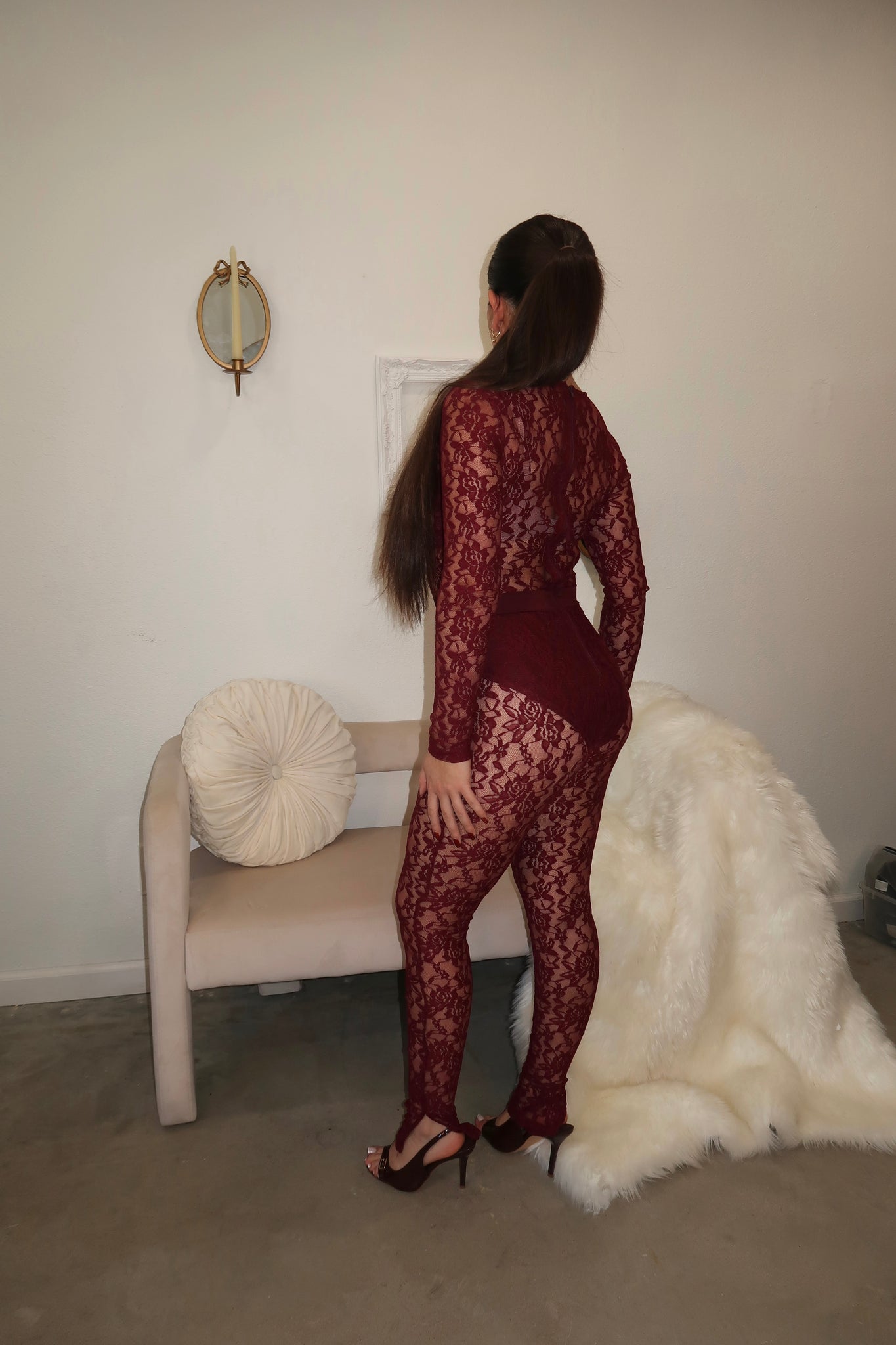 - Dark burgundy full lace jumpsuit